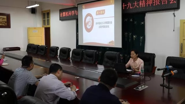 为深入学习贯彻党的十九大精神,2018年5月11日下午,英国365集团公司学习和贯彻党的十九大精神报告会在计算机楼312会议室举行。马克思主义学院翟光艳老师主讲,英国365集团公司班子成员和全体教师以及全体学生党员、党员发展对象聆听了此次报告会。