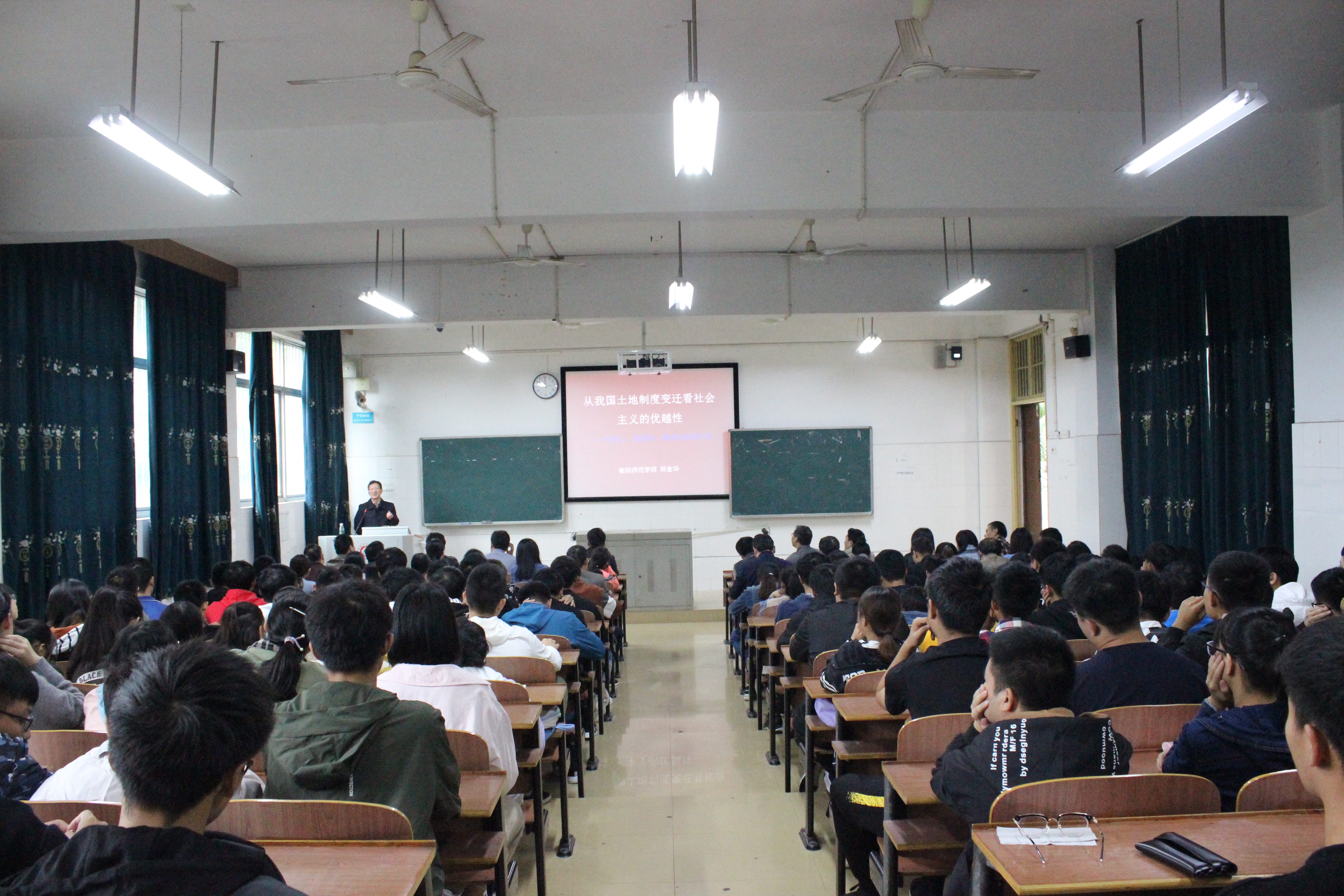 党课上,郑校长用“几千年的华夏文明史,曲曲折折、跌宕起伏、兴衰交替,不断前行。---从土地制度变迁来解析”的问题引出了今天的党课主题。为大家讲解了中国经历的五种社会形态:原始社会土地制度、奴隶土地制度、封建社会土地制度、半封建半资本主义土地制度、社会主义社会土地制度。