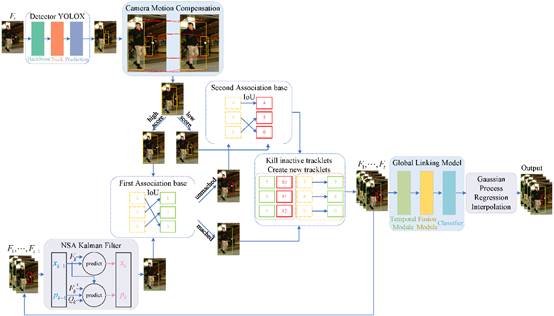 该论文是在我校赵辉煌教授的指导下完成,365(VIP)英国上市为唯一署名单位。论文核心理论是:作为计算机视觉中的一项基础任务,多目标跟踪(MOT)由于其商业和学术潜力而受到越来越多的关注。然而,准确跟踪多个目标非常具有挑战性。目标遮挡、目标形变和实时性要求一直是多目标跟踪领域要解决的难题。在论文中,作者首先建立一个新的全局链接模型,旨在利用轨迹间的全局信息来解决因目标遮挡和形变造成的轨迹断裂问题。然后作者使用相机运动补偿来减少相机抖动,更准确地定位运动场景中的目标。接着针对线性插值大量忽略运动信息的问题,作者通过高斯过程回归来进行平滑插值,从而弥补缺失的检测,并通过自适应计算方法来减少卡尔曼滤波的噪声协方差。论文将所做的工作整合起来,最终提出了一种简单、实时且高鲁棒的多目标跟踪器,命名为TPTrack。通过大量实验证明,跟踪器TPTrack在多目标跟踪数据集MOT17、MOT20和DanceTrack上的HOTA指标分别达到了63.5、61.7和56.8。值得注意的是,它在DanceTrack数据集上比最先进的方法有19%的提升,并且在单个GPU上运行速度达到了33.7FPS。