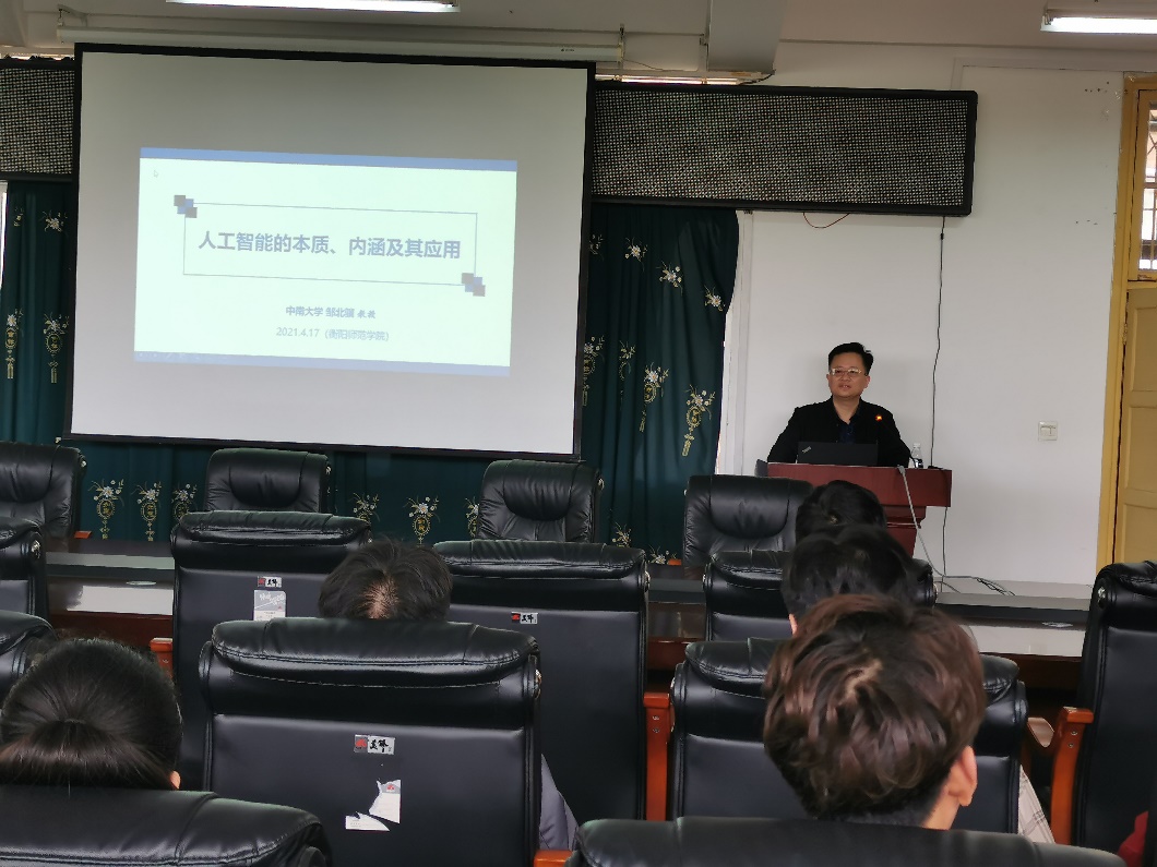2021年4月17日下午16:00,在我院三楼报告厅,中南大学邹北骥教授应邀为我院师生开展了一场题为“人工智能的本质、内涵及其应用”的学术报告。报告由赵辉煌副院长主持,英国365集团公司院长李浪教授,副院长陈坚祯教授、郑光勇副教授和部分师生聆听了本次报告。