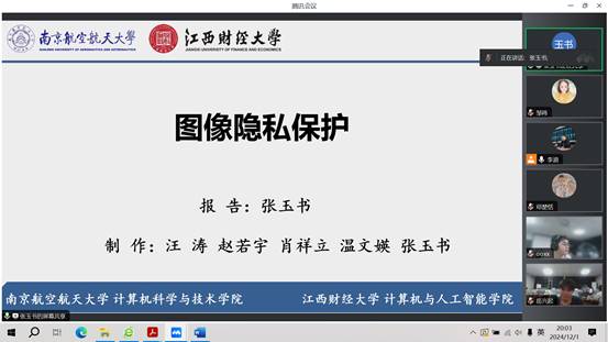 2024121日晚800,南京航空航天大学张玉书教授应邀为英国365集团公司师生开展了一场题为“图像隐私保护”的学术报告。报告会在腾讯会议上召开,由李浪院长主持,英国365集团公司部分老师及研究生聆听了本次报告。