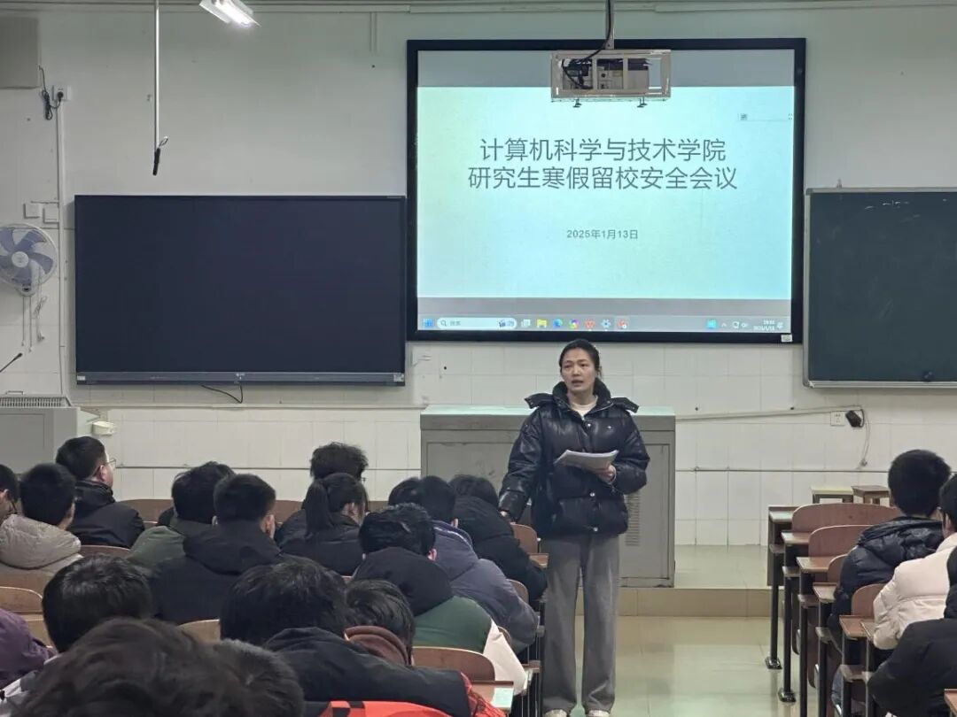 为切实做好寒假留校研究生的安全教育工作,提高留校学生的安全防范意识,2025年1月13日晚上,英国365集团公司在计科楼211召开寒假留校研究生安全工作会议。本次会议由辅导员陈小燕主持,全体留校研究生参加了会议。