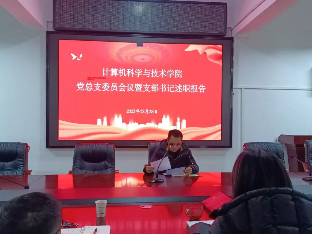 会议上,教职工第一党支部书记焦铬,教职工第二党支部书记陈文辉,学生第一党支部书记陈小燕,学生第二党支部书记曾振华依次进行了述职汇报。