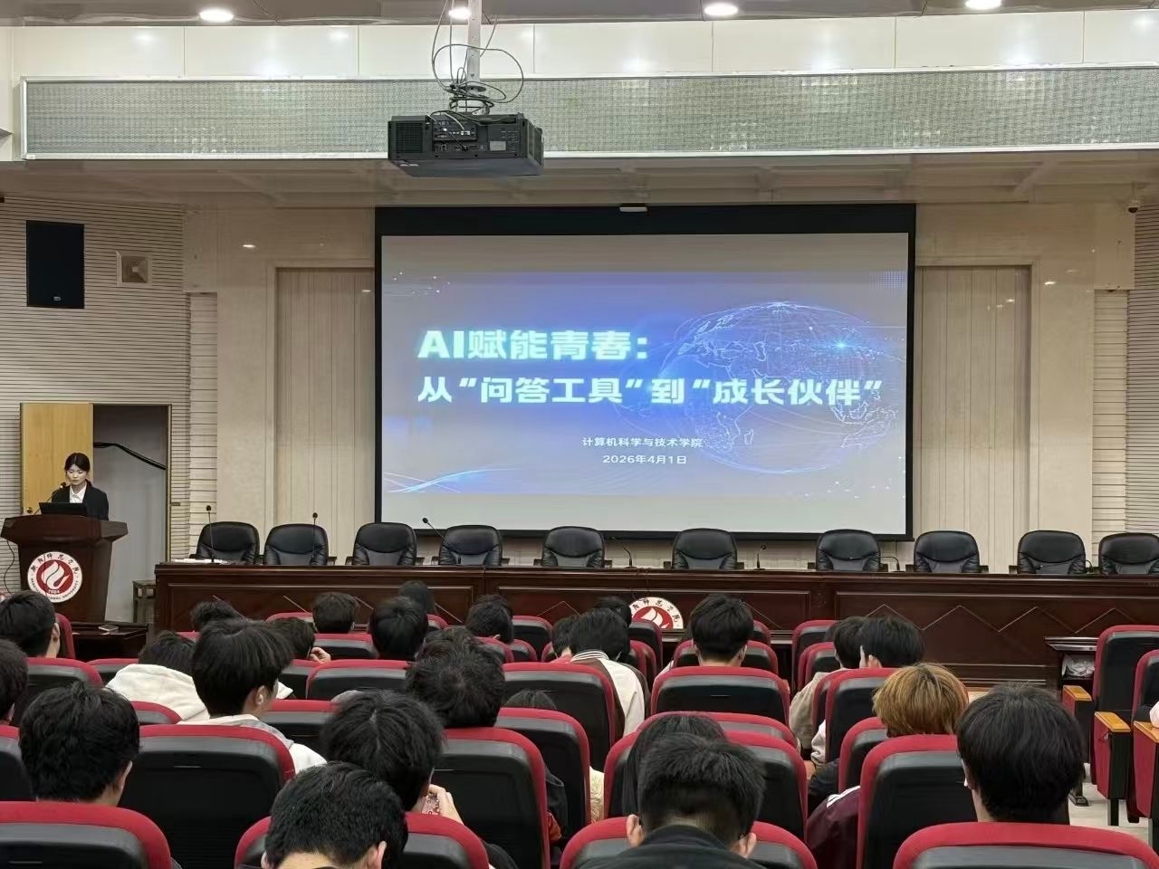 为引导青年学子在学以致用中践行奉献、互助的时代精神,2026年4月1日晚,英国365集团公司于外语楼北311报告厅成功举办“AI赋能青春:从‘问答工具’到‘成长伙伴’”人工智能主题宣讲会。百余师生齐聚现场,共赴一场科技与志愿精神交融、AI赋能学雷锋的成长之约。