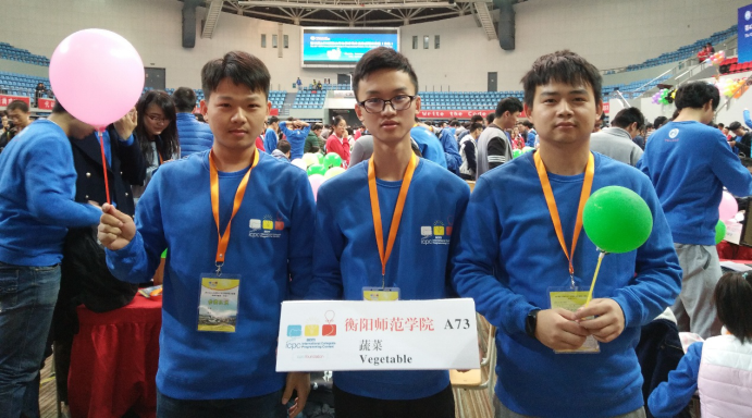我院学生在第42届ACM国际大学生程序设计竞赛亚洲区域赛(青岛)喜获铜奖 2017年11月5日,全国高校第42届ACM国际大学生程序设计竞赛亚洲区域赛(青岛)在中国石油大学(华东)落下帷幕。本次大赛是由来自于全国包括朝鲜金日成综合大学、港大、清华、北大上交在内的226所大学363支队伍参加。刘新宇老师指导的2015级学生陈明慧、2016级学生陆俊杰和2016级学生张凯旋组成的“蔬菜(Vegetable)”队荣获铜奖。 本次比赛是我校在ACM/ICPC中首次拿到全国区域赛现场决赛的参赛资格,同时也是我校在此类竞赛首次冲出湖南省并摘得全国性的铜奖。