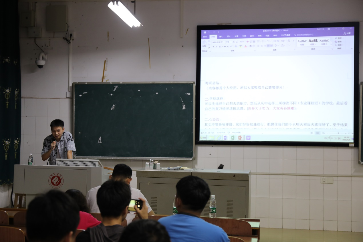 此次考研经验分享会取得圆满成功,这不仅仅是对我院18级同学们在考研中取得的优异成绩的肯定和赞扬,也表达着学院领导对19级学生能在下一届考研中取得成功的期待。同时也彰显了我院在学风建设上取得的新成就,以及在考研路上迈出的重要一步。