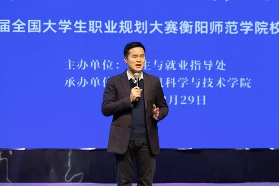 大赛特邀校党委委员、组织部部长唐艳,衡阳市第九中学书记蒋达观,中国人寿衡阳分公司党委委员、副总经理仇猛,招生与就业指导处处长刘典文,学生工作部部长董俊,团委书记朱贤友,现代教育发展学院院长唐斯萍,马克思主义学院博士陈亮伟担任大赛评委。