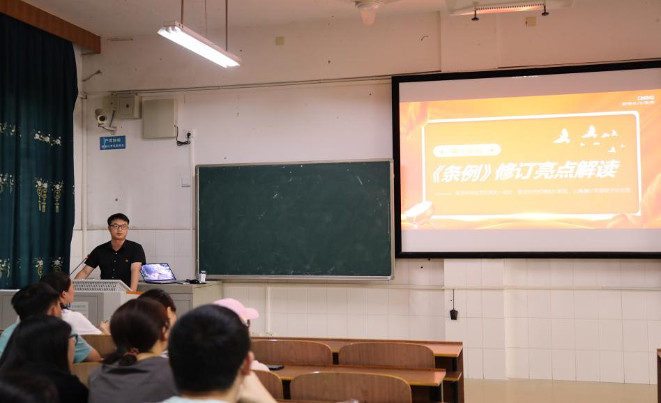 为深入学习贯彻习近平总书记关于党的自我革命重要论述精神和《中国共产党纪律处分条例》(以下简称《条例》),扎实开展党纪学习教育,推进党纪学习教育走深、走实、走细,增强全体学生党员的思想自觉、政治自觉和行动自觉,5月16日16:00,我院研究生党支部书记陈小燕、本科生党支部书记曾振华分别在计科楼211教室和215教室为本科生、研究生党员们讲授了党纪学习教育专题党课。