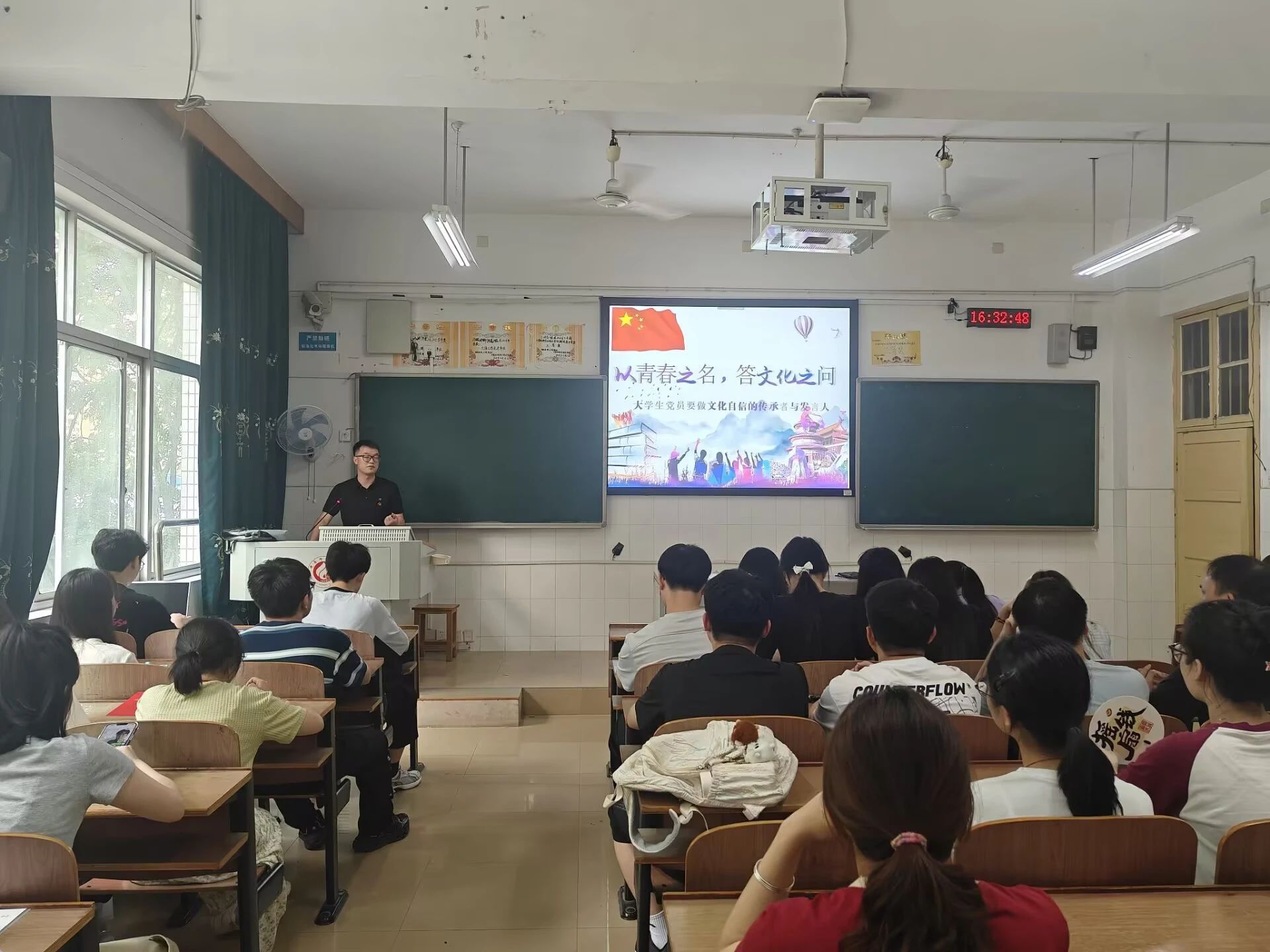 为使党员深刻领悟文化自信的内涵,激励学生党员以青春的激情与担当传承和弘扬优秀文化,进一步坚定理想信念、坚守初心使命,强化党性修养。5月22日16:30,我院于云海楼205教室组织开展“以青春之名,答文化之问”主题党课,此次活动由本科生党支部书记曾振华主讲,本科生党支部党员与研究生党支部党员参与。