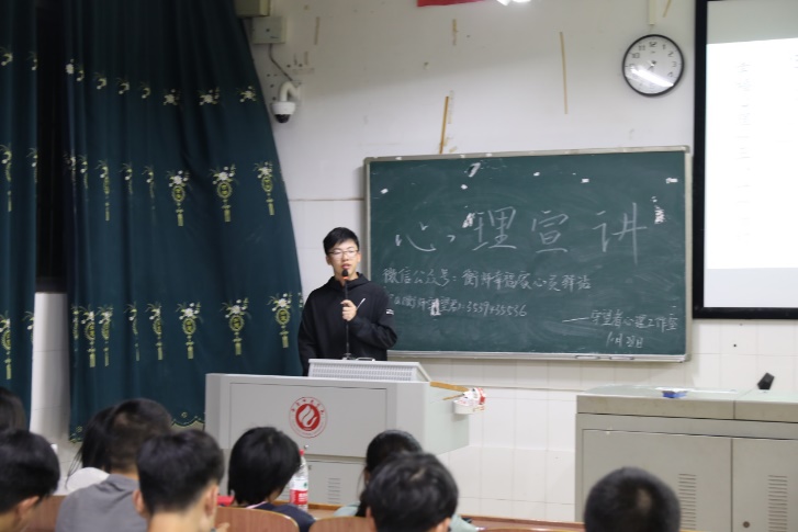 宣讲开始前,负责宣讲的义工就为新生们介绍了什么是“幸福心理五个一” 接着,他们通过短片《我和一只小黑狗》提出轻度抑郁症和中度抑郁症的表现和解决措施;紧接着,他们通过一些图片向新生们介绍了常见的心理效应如巴纳姆效应、罗森塔尔效应等。在与同学们进行热情的互动之后,主讲人向同学们详细地介绍了大学生心理健康中心以及预约心理咨询的三种方法。最后,主讲人给同学们强调了心理健康的重要性,告诉同学们要时刻关注自己的心理状态,学会认识自己,认识他人。
