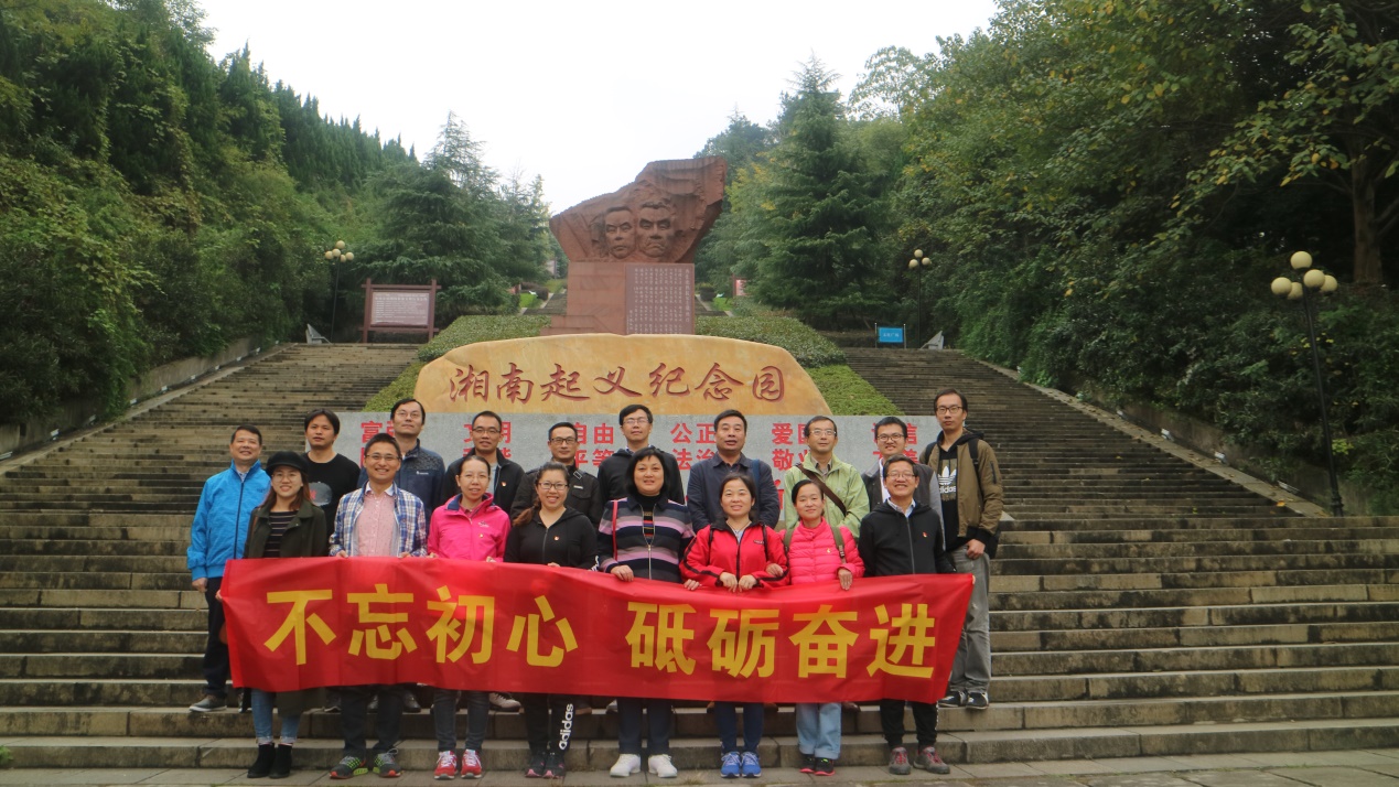 2017年11月11日,在党的十九大胜利闭幕之际,我院全体老师党员开展了以“不忘初心,砥砺奋进”为主题的党日活动,来到了湖南郴州湘南起义纪念园,一起重温历史,缅怀先烈。