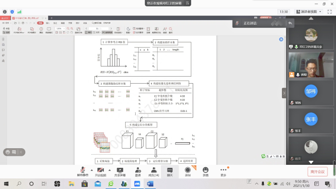 会议伊始,赵辉煌副院长介绍了会议的流程,并就学院近三年老师项目申报情况作报告。随后,邓红卫教授、梁小满教授、林睦纲博士和陈中博士分别以题为《RFⅠD室内三维指纹定位算法研究》、《AIOT背景下计算机视觉的目标检测算法研究》、《难解图问题重优化参数算法研究》和《混沌量子图像加密关键问题研究》的项目申报书做详细报告,同时,到会领导予以在线指导,与报告者就各自的申报课题以及申报项目相关内容进行了深入的分析和交流。