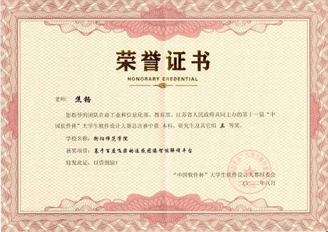 “中国软件杯”是由教育部、工业和信息化部、江苏省人民政府共同主办的大学生软件设计大赛。第十一届大赛历时1年,共有来自31个省份的5576支队伍积极参与。经过初赛评审,总决赛评审,总决赛答辩,最终决出一等奖队伍21支,二等奖队伍98支,三等奖队伍240支。