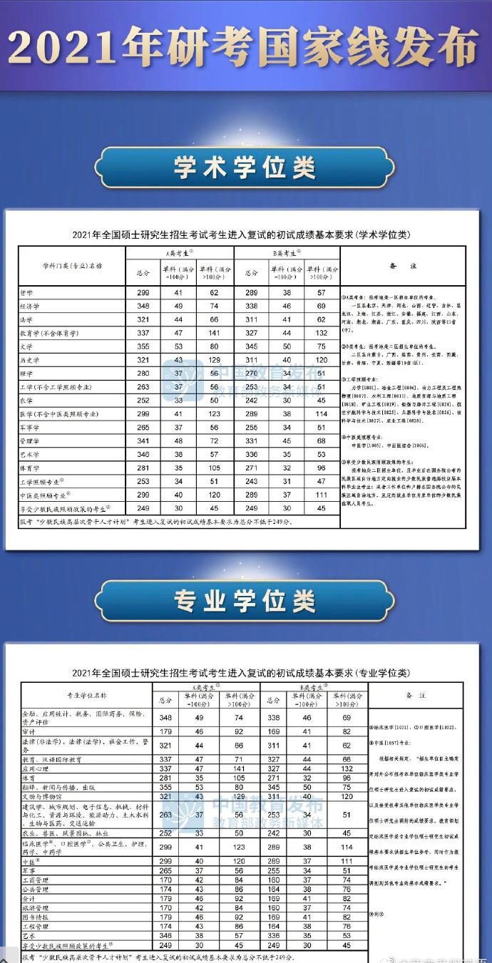 2021年国家考研线发布